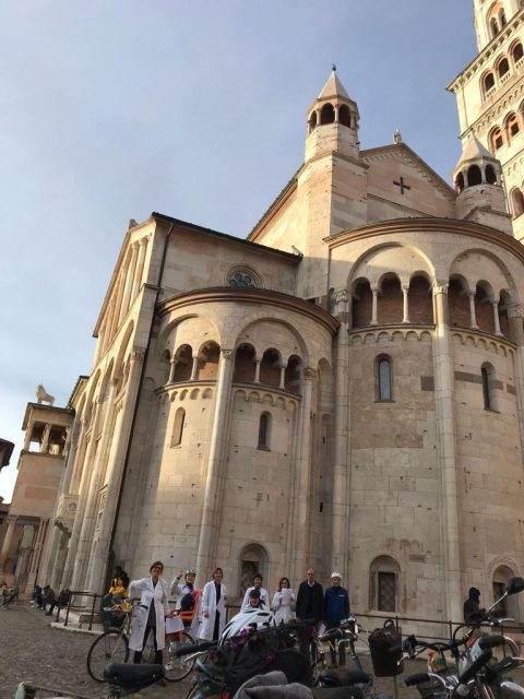 Several rides of varying distances converging on the Piazza Grande in Modena